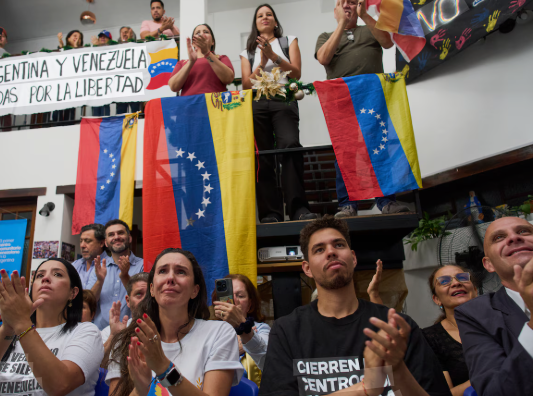 Cientos de estudiantes universitarios encabezaron una masiva manifestación en Caracas para exigir la liberación de todos los presos políticos y l...