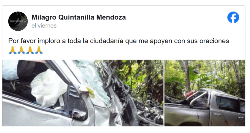 Los días pasaron y la intriga embargaba a los familiares de Quintanilla y Sosa. Pese a que se denunció las desapariciones, las diligencias y trabajos de búsqueda no daban respuestas. Sin embargo, el último viernes 9 de mayo, transportistas hallaron una camioneta desbarrancada, la cual fue confirmada como el vehículo que transportaba a los profesionales.