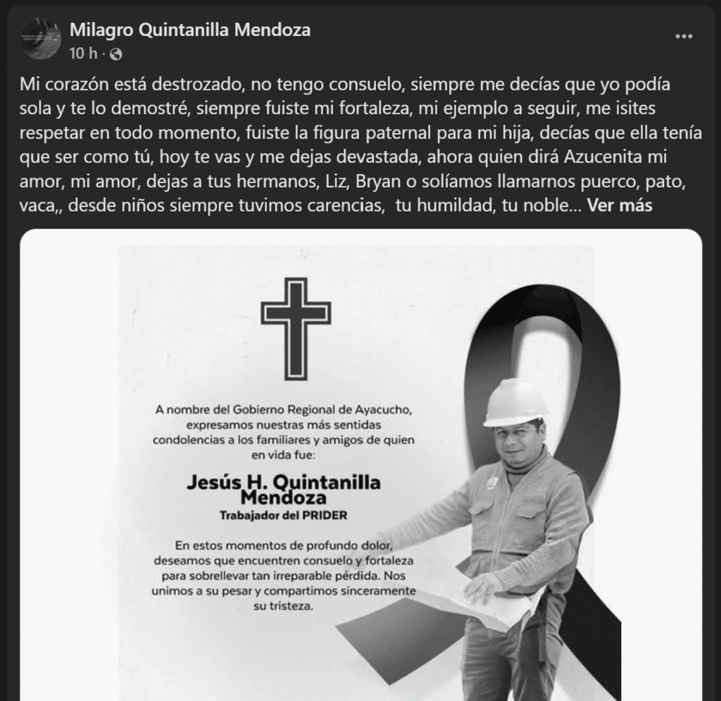 De acuerdo a los reportes preliminares, el Ing. Jesús H. Quintanilla Mendoza (40), quien se desempeñaba en un proyecto del Gobierno Regional de Ayacucho, fue citado por la docente Aydé Sosa Figueroa el pasado domingo 4 de mayo. Ambos partieron desde el distrito de Andrés Avelino Cáceres con dirección a la localidad de San Miguel, debido a que el ingeniero realizaría un trabajo técnico en un terreno de la maestra.